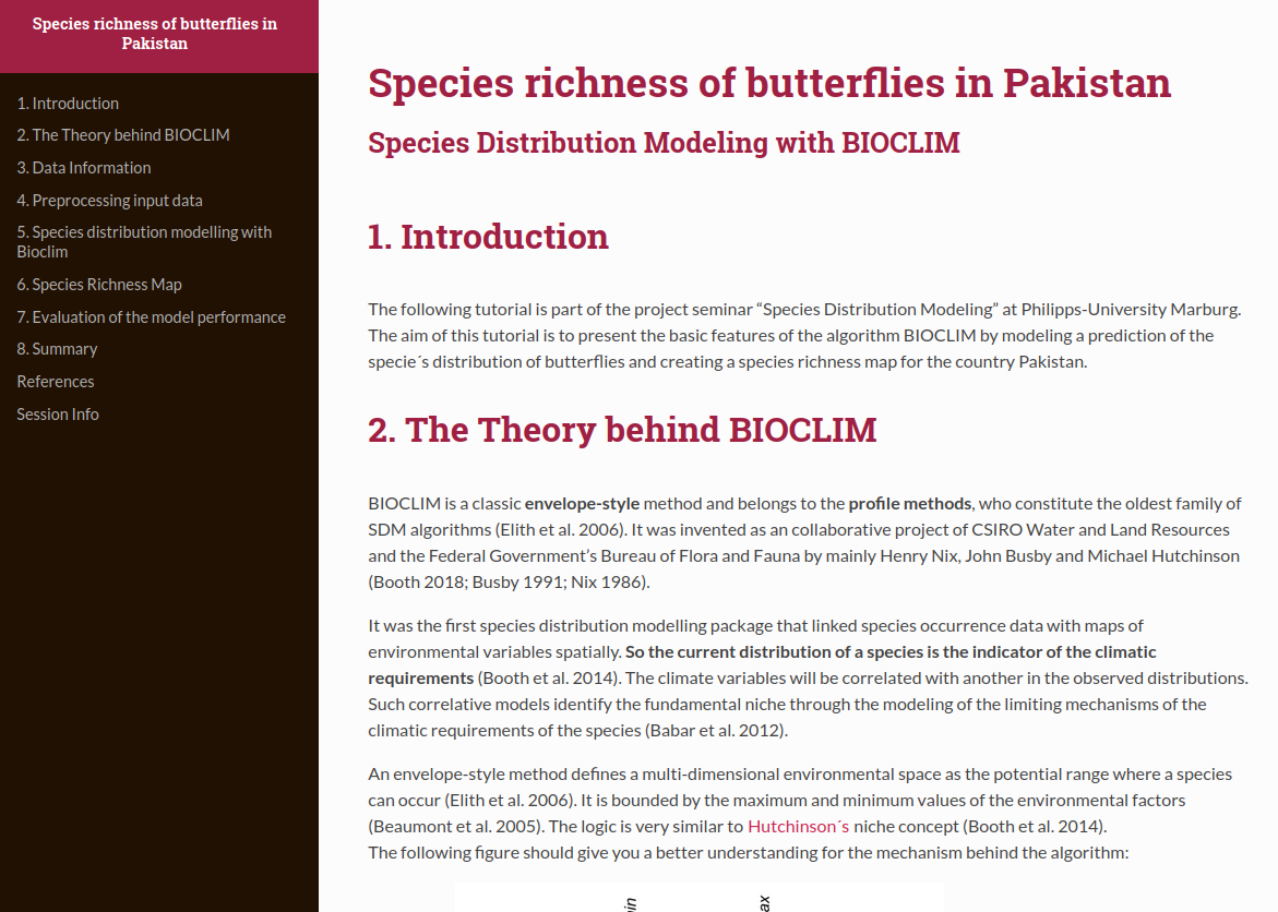 This is a collection of sources to obtain various kinds of information on different SDM techniques. These tutorials have been created by students of the Species Distribution modeling course.